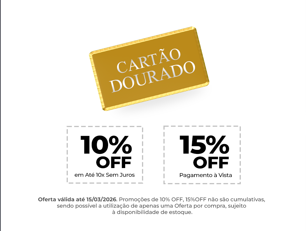 10% OFF EM ATÉ 12X SEM JUROS 15% OFF PAGAMENTO A VISTA