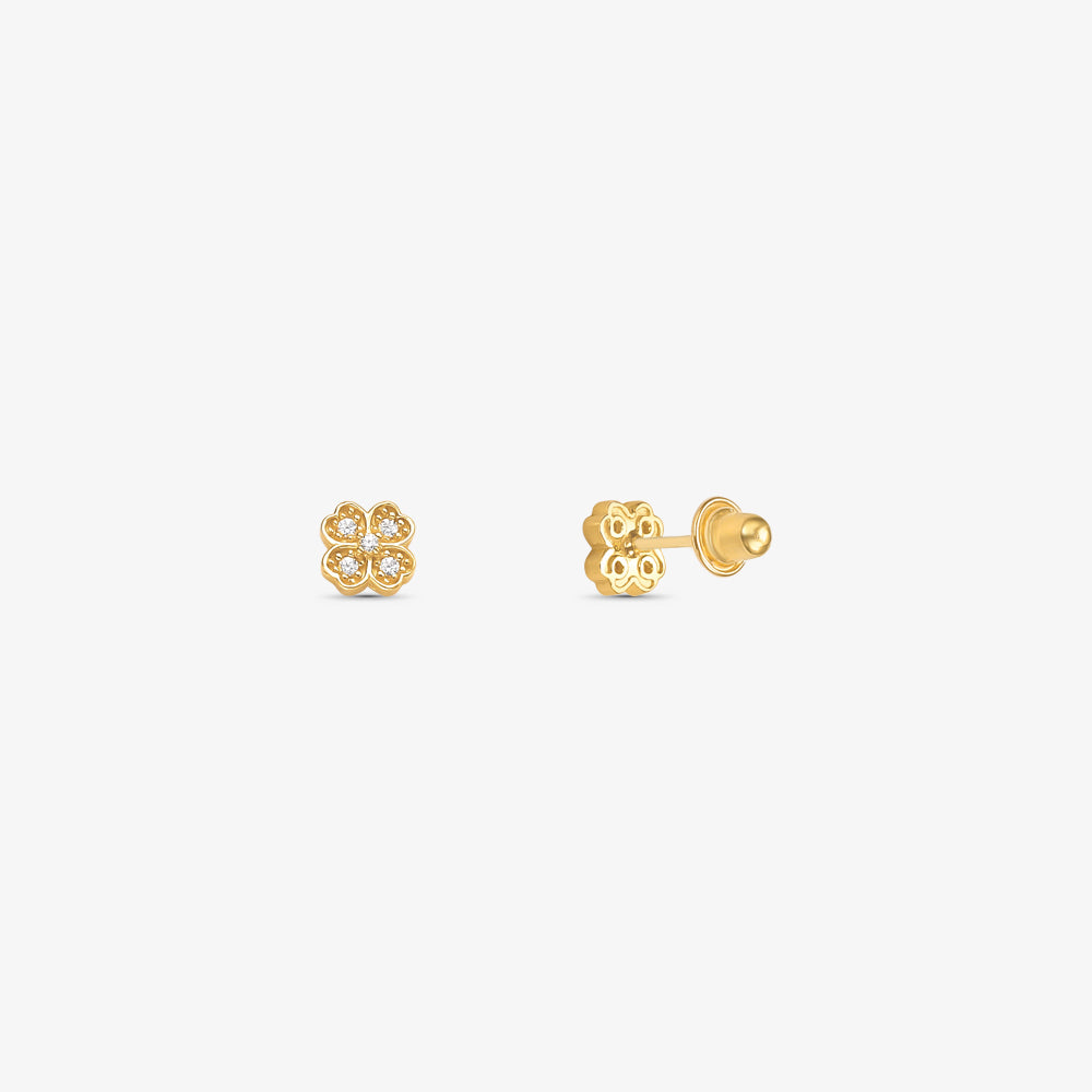 Brinco Baby Flor com Pedras em Ouro Amarelo 18K
