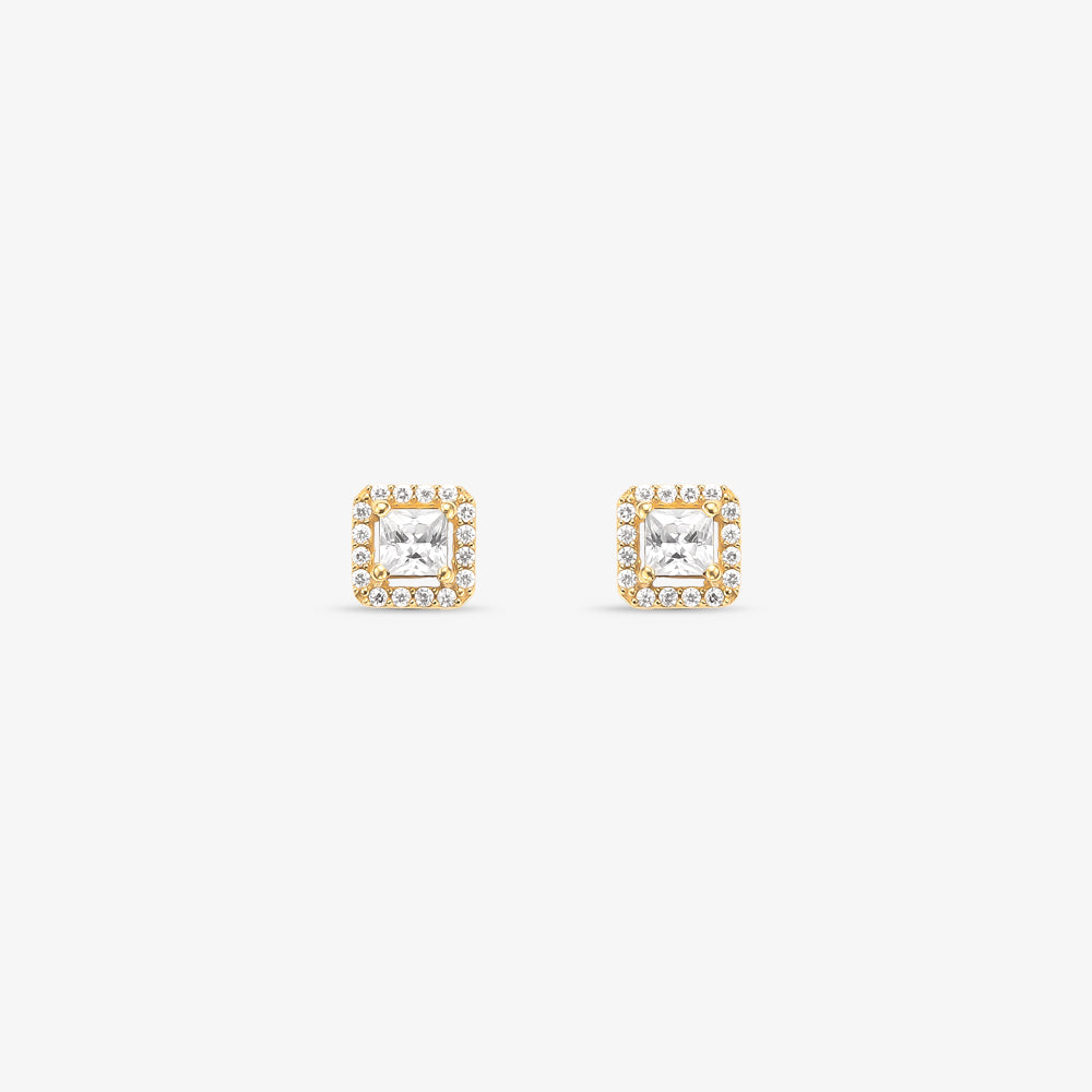 Brinco Carre Quadrado com Pedras em Ouro Amarelo 18K