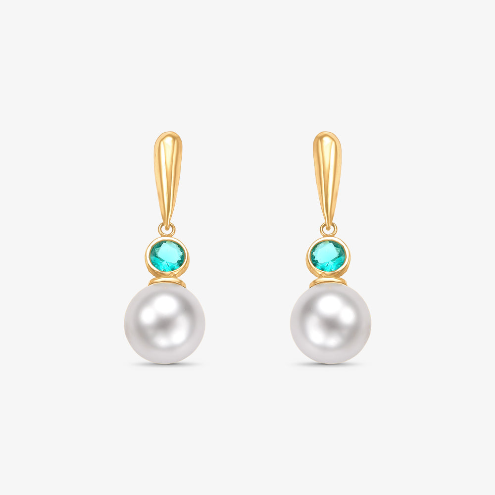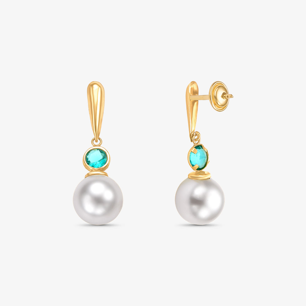 Brinco com Pedras e Pérola Pendurado em Ouro Amarelo 18K