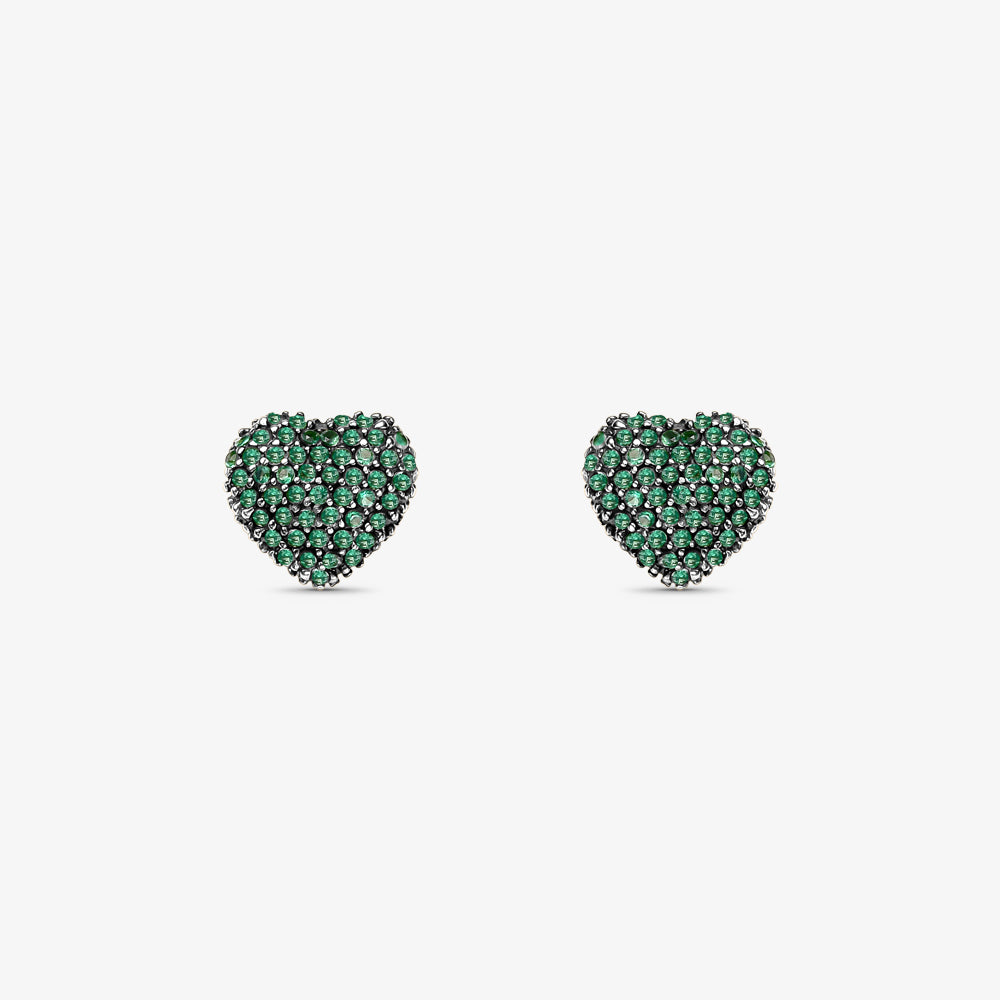 Brinco Coração com Pedras Verde em Ouro Amarelo 18K