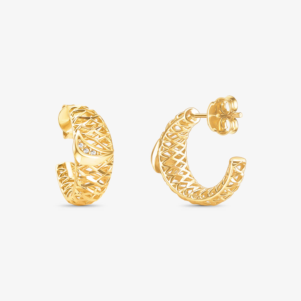 Brinco Estamparia com Pedras em Ouro Amarelo 18K