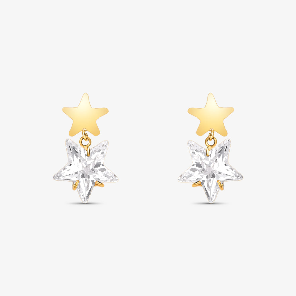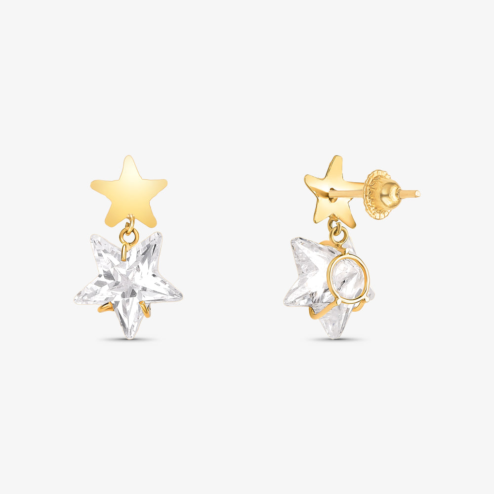 Brinco Estrela com Pedras Pendurado em Ouro Amarelo 18K