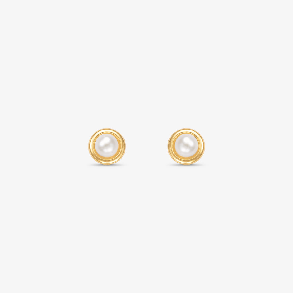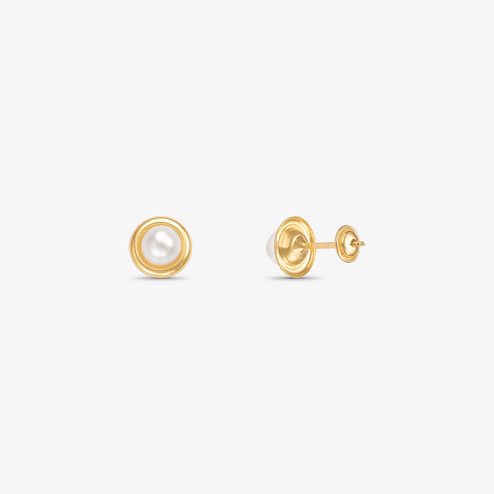 Brinco Pérola Natural Roseta em Ouro Amarelo 18K