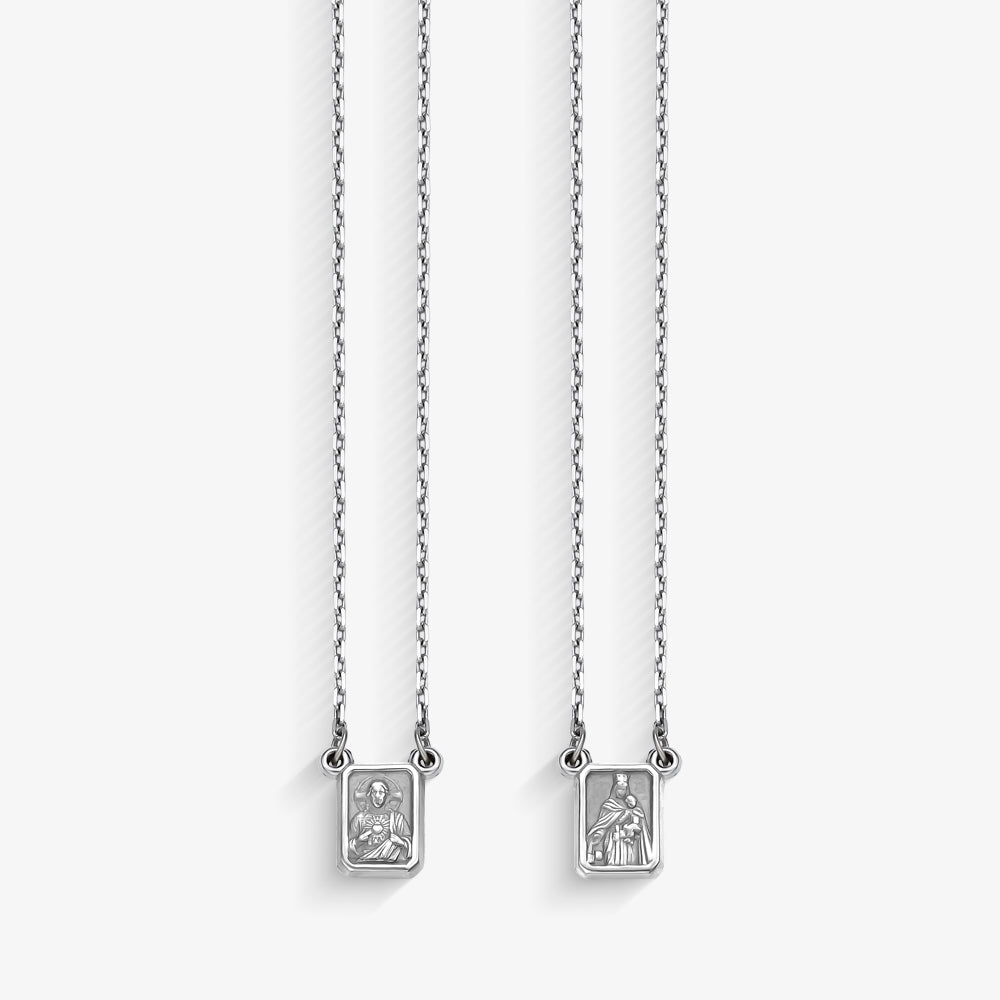 Escapulário Cartier Sagrado Coração PP com 60cm Ouro Branco 18K