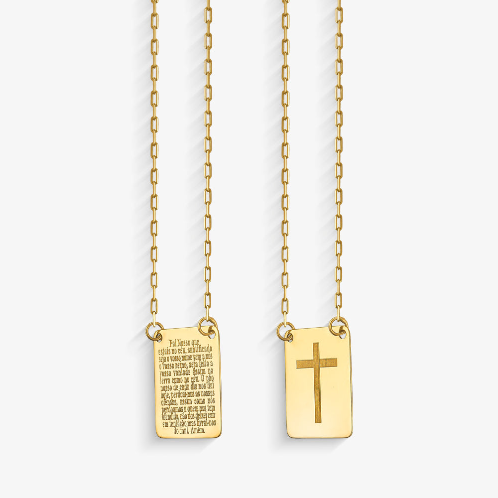 Escapulário Oraçõa e Cruz em Ouro Amarelo 18K