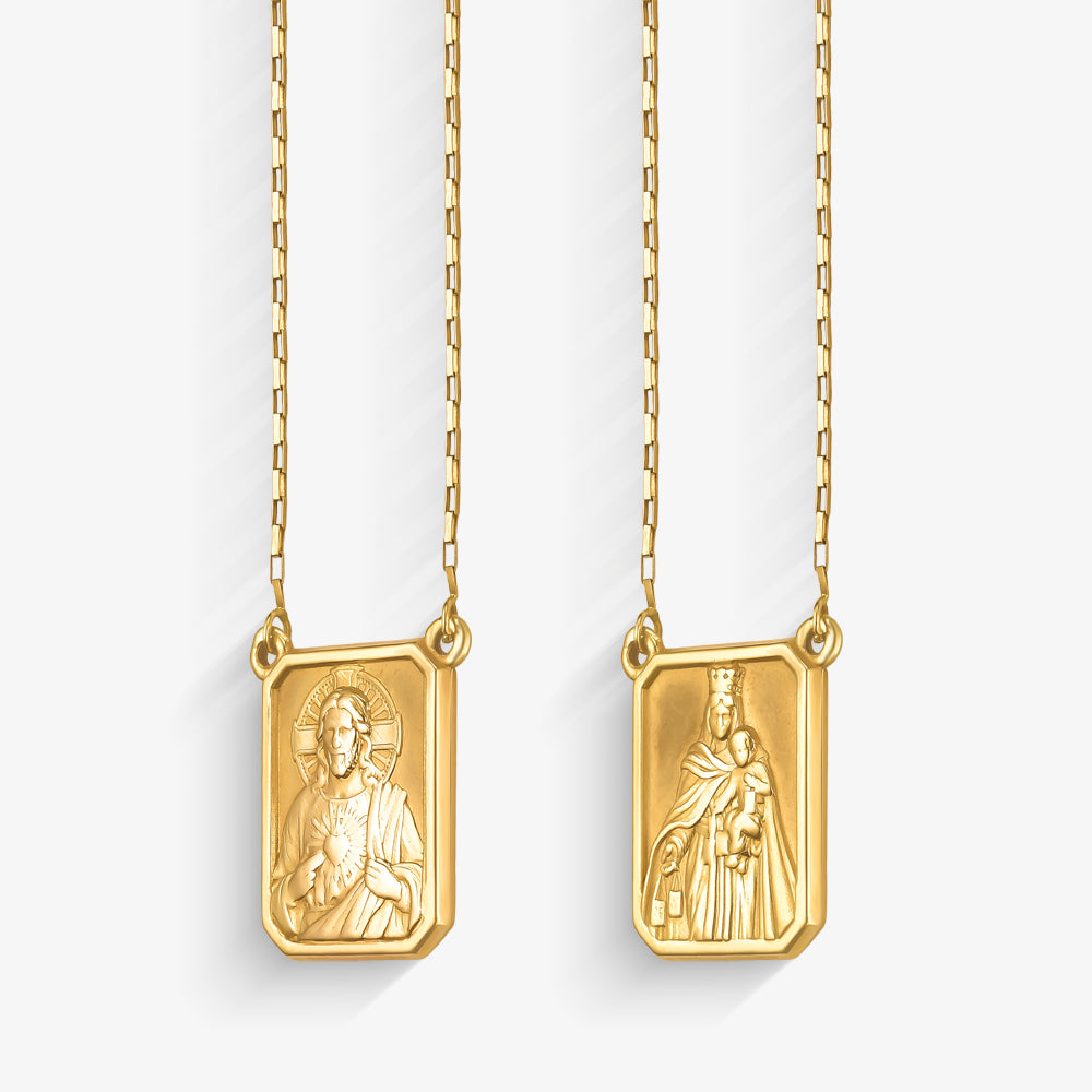 Escapulário Sagrado Coração G em Ouro Amarelo 18K