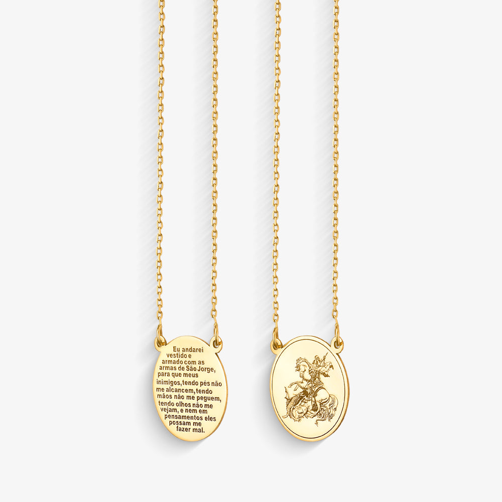 Escapulário São Jorge Círculo M com 65cm em Ouro Amarelo 18K