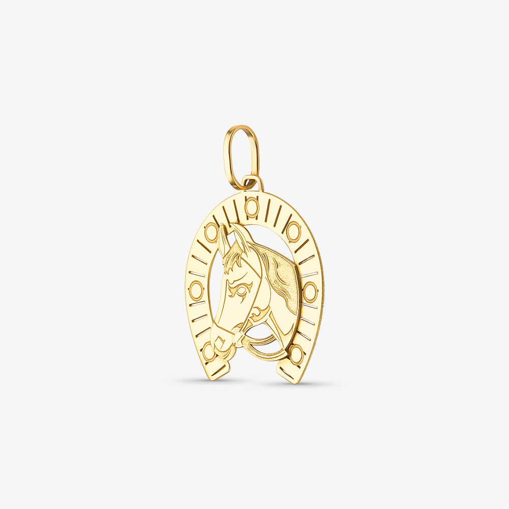 Pingente Cavalo com Ferradura em Ouro Amarelo 18K