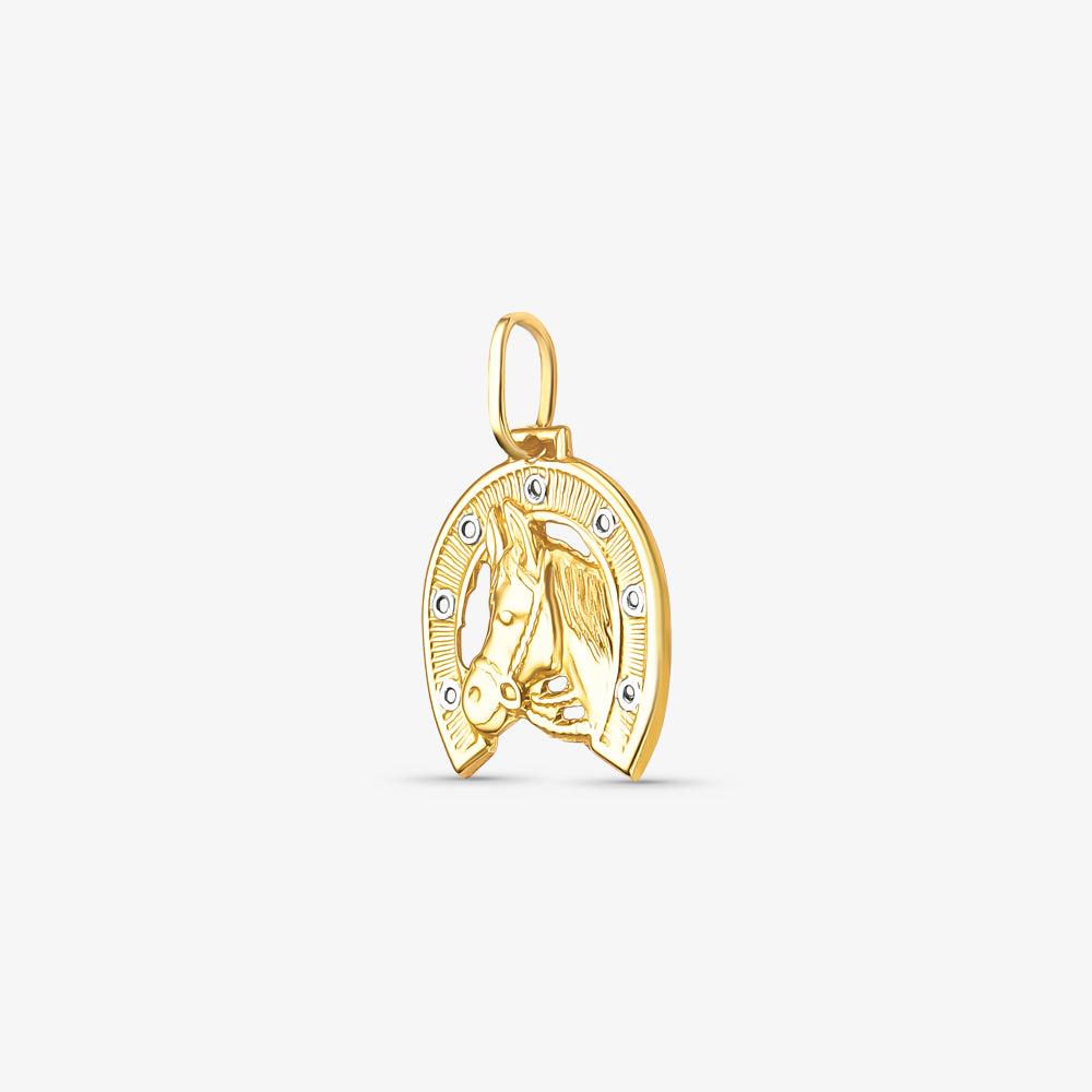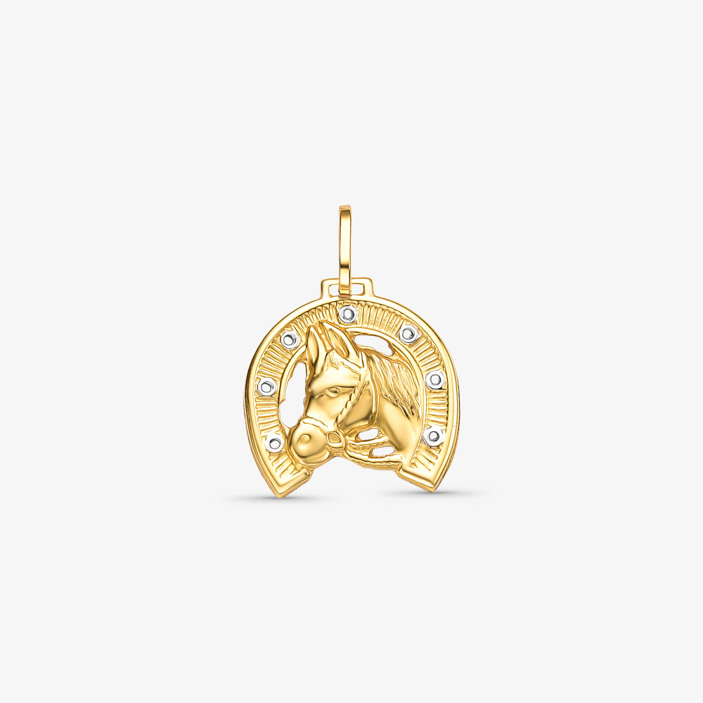 Pingente Cavalo com Ferradura Pequeno em Ouro Amarelo 18K