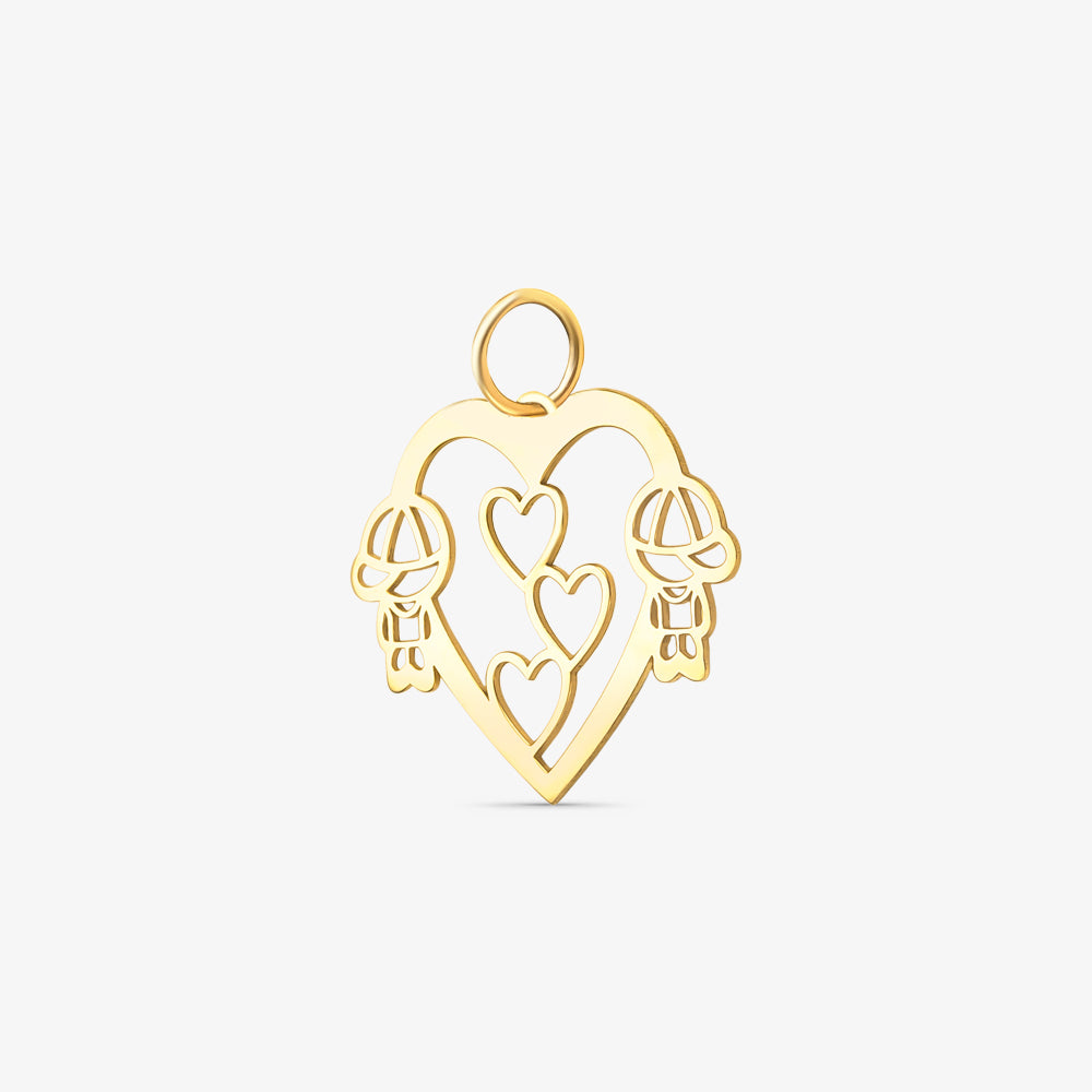Pingente Coração Dois Meninos em Ouro Amarelo 18K