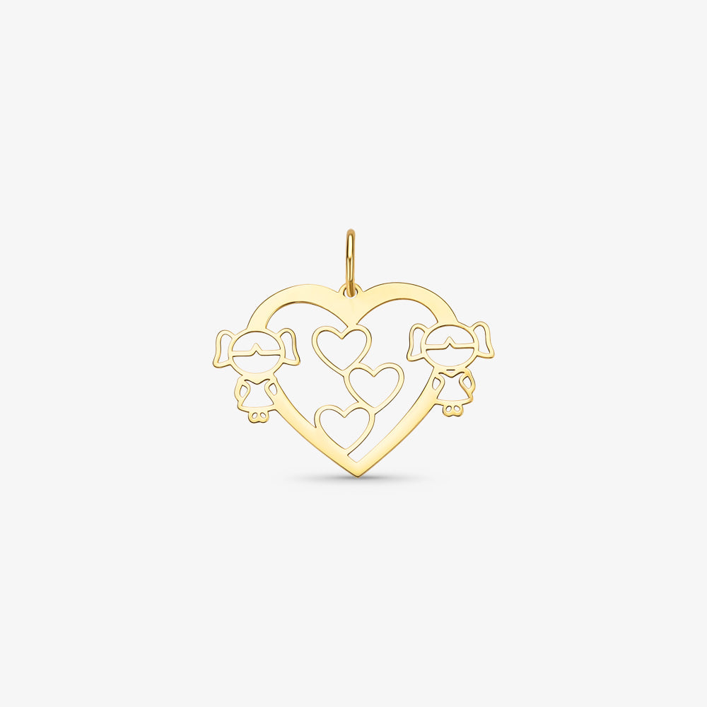 Pingente Coração Duas Meninas em Ouro Amarelo 18K