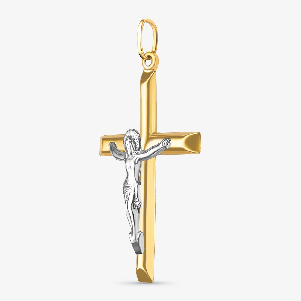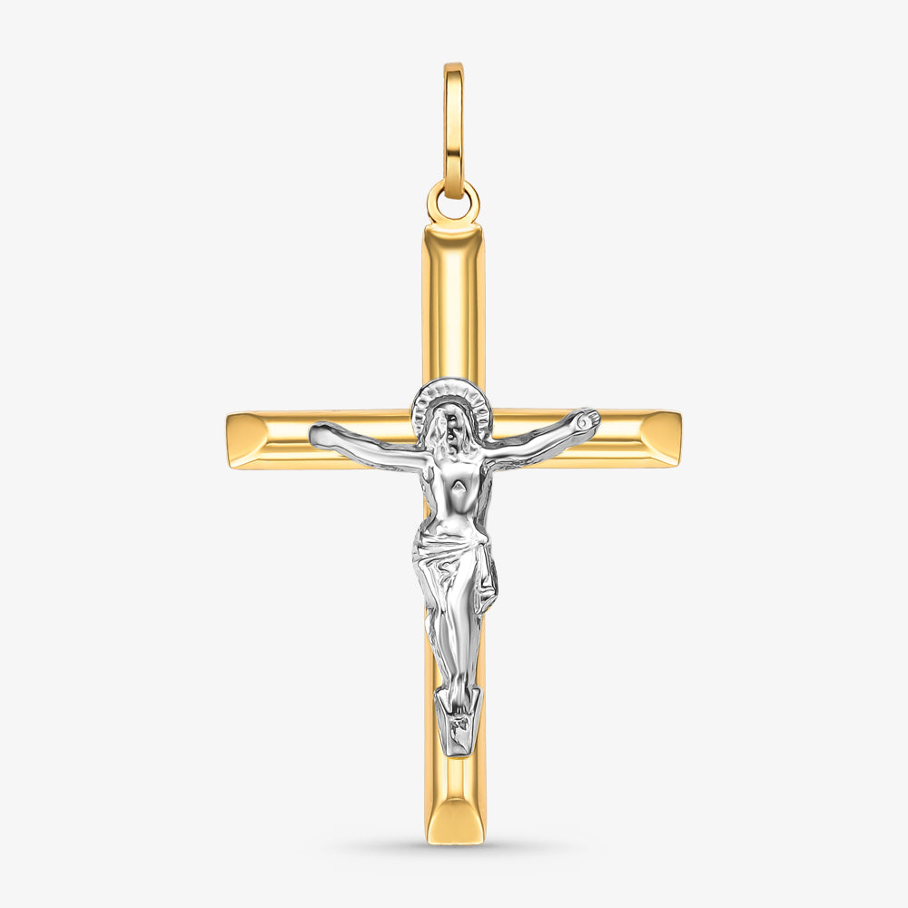 Pingente Cruz Grande Lisa com Cristo em Ouro Bicolor 18K