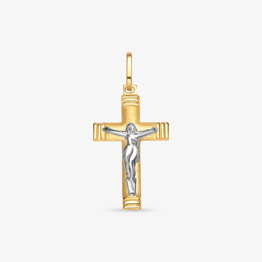 Pingente Cruz Pequena Fosca com Cristo em Ouro Bicolor 18K