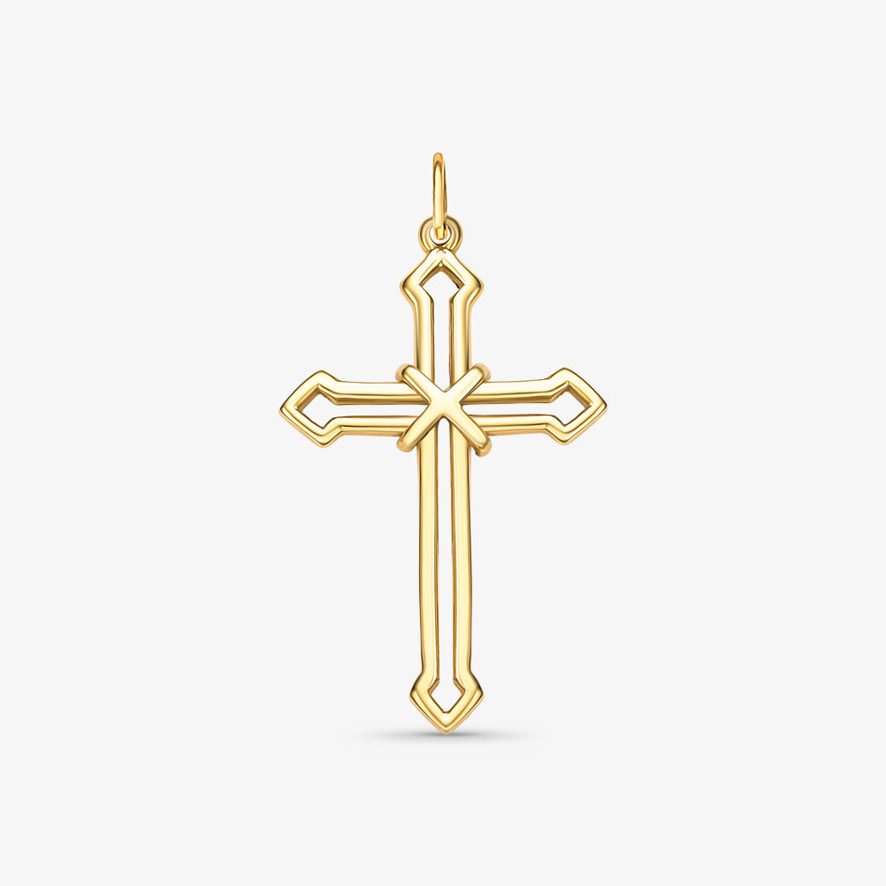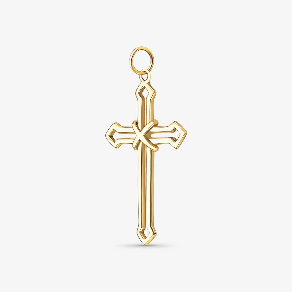 Pingente Cruz Vazada Corda Média em Ouro Amarelo 18K