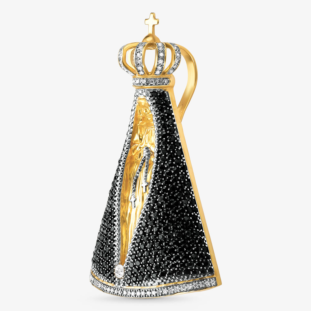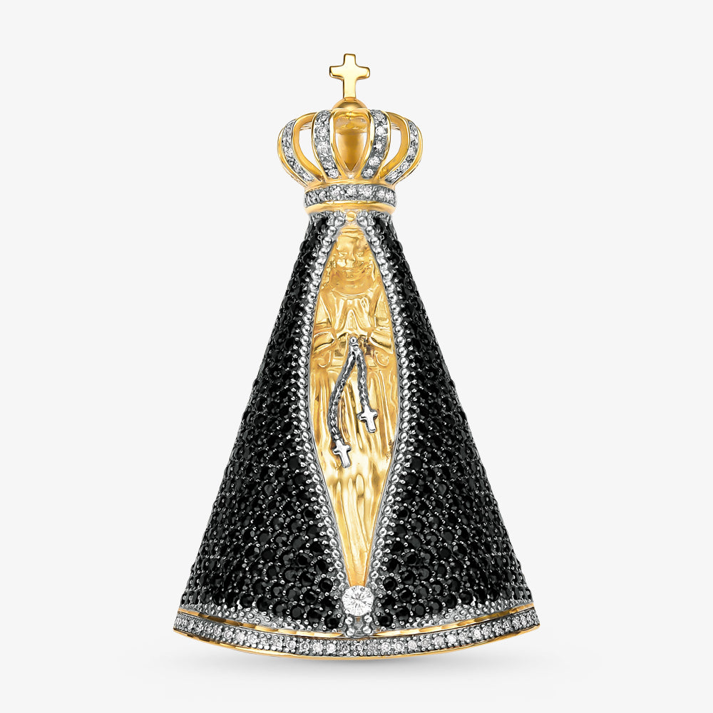 Pingente N.Sra Aparecida com Diamante e Safiras Naturais em Ouro Amarelo 18K