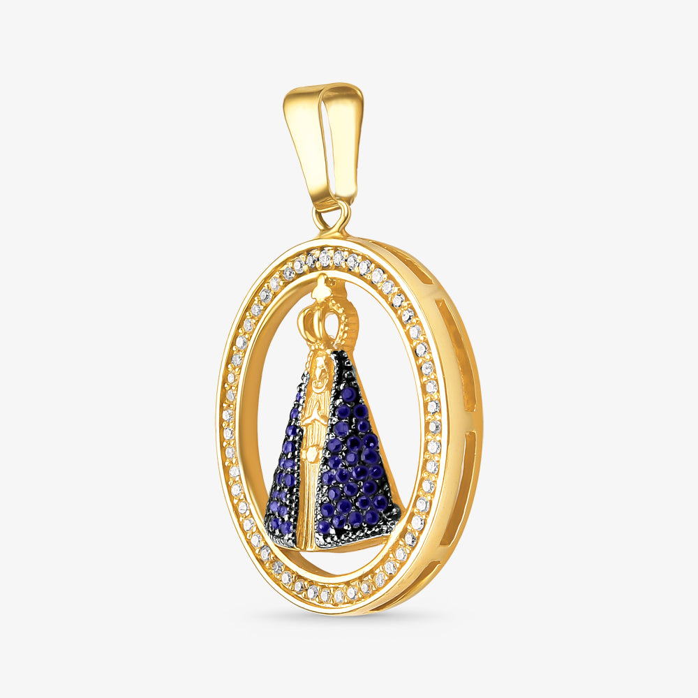 Pingente N.Sra Aparecida com Diamantes e Safiras Naturais em Ouro Amarelo 18K