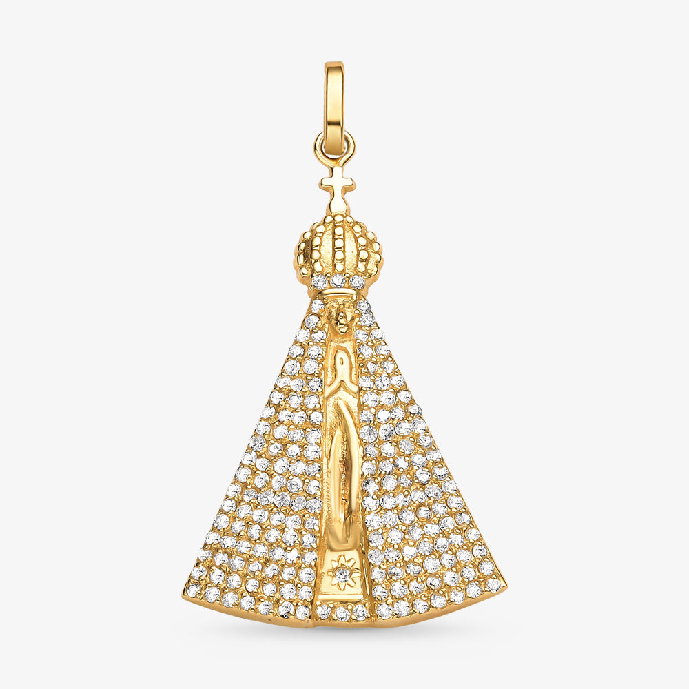 Pingente N.Sra Aparecida com Diamantes em Ouro Amarelo 18K