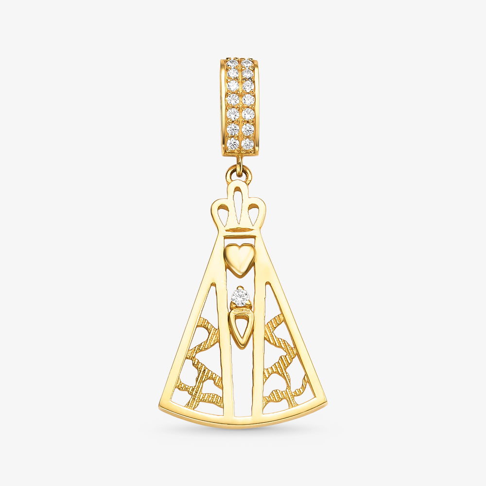 Pingente N.Sra Aparecida Vazada com Pedras em Ouro Amarelo 18K