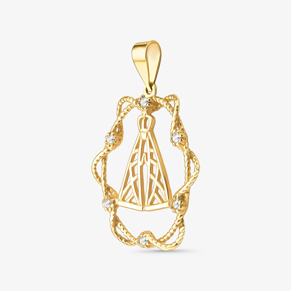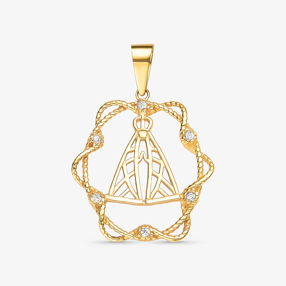 Pingente Nossa Senhora Aparecida Vazado com Aro com Pedras em Ouro Amarelo 18K