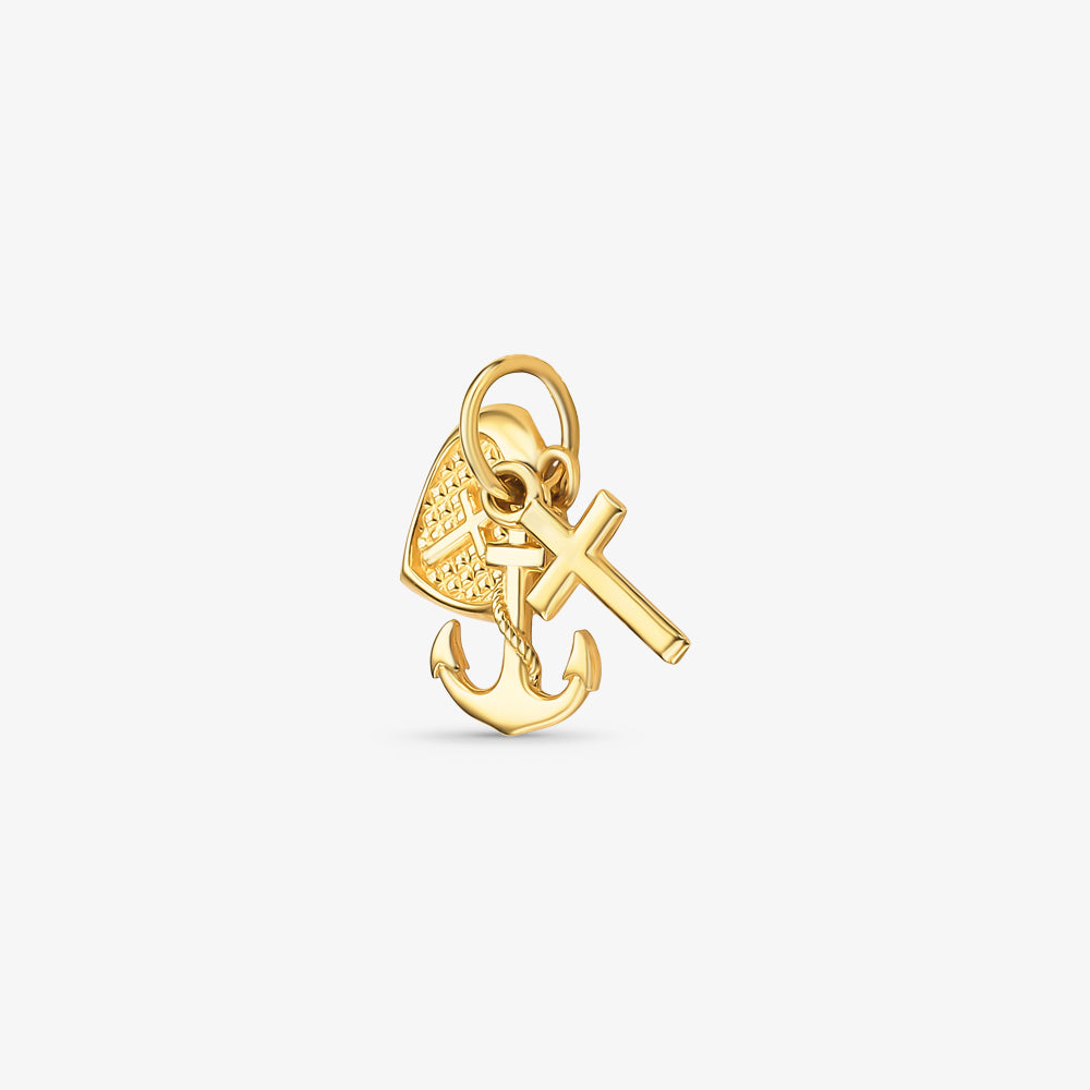 Pingente Patuá com Cruz, Âncora e Coração em Ouro Amarelo 18K