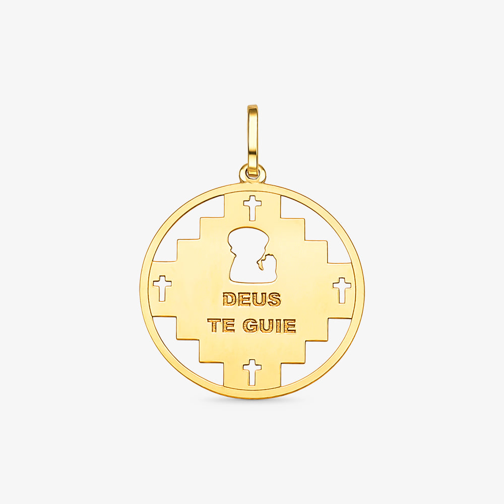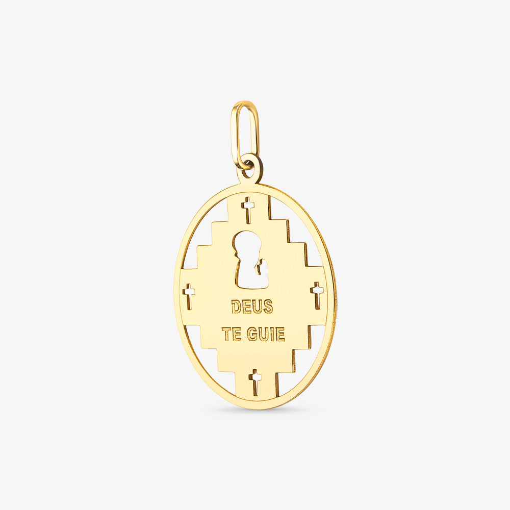 Pingente Vazado Deus Te Guie em Ouro Amarelo 18K