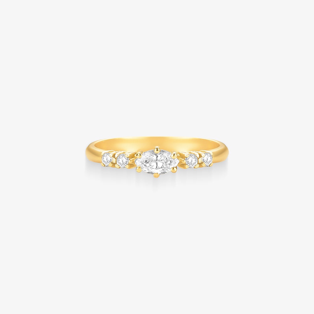 Anel Solitário Navete com Diamante em Ouro Amarelo 18K