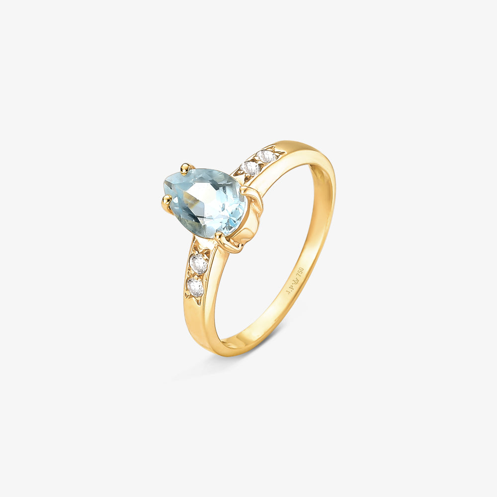 Anel com Água Marinha e Diamantes Naturais em Ouro Amarelo 18K