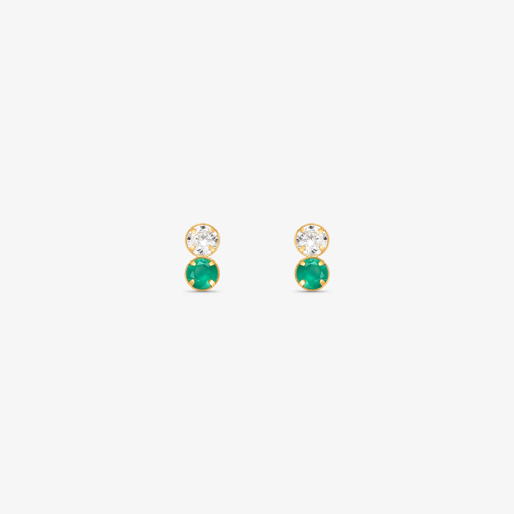 Brinco Baby com Pedra Dupla Verde em Ouro Amarelo 18K