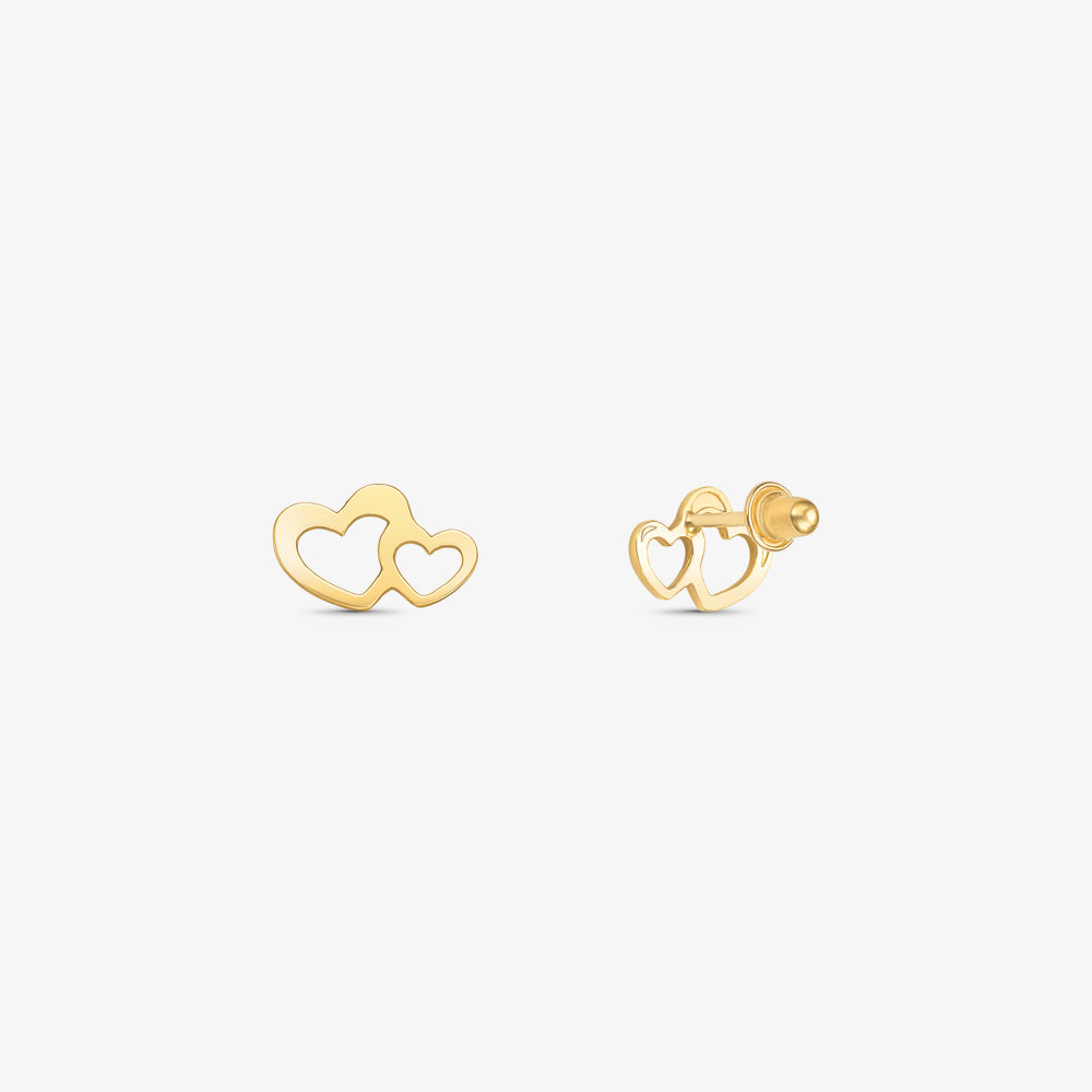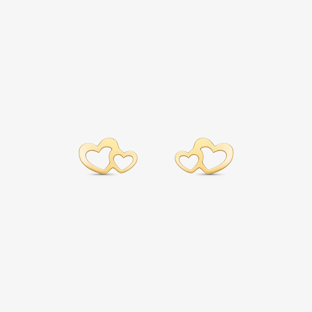 Brinco Coração Baby Duplo em Ouro Amarelo 18K