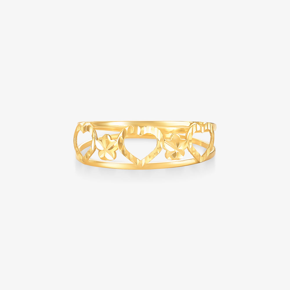 Anel Estamparia Coração Estrela em Ouro Amarelo 18K