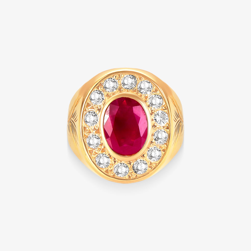 Anel Glória Oval com Diamante e Rubi Natural em Ouro Amarelo 18K