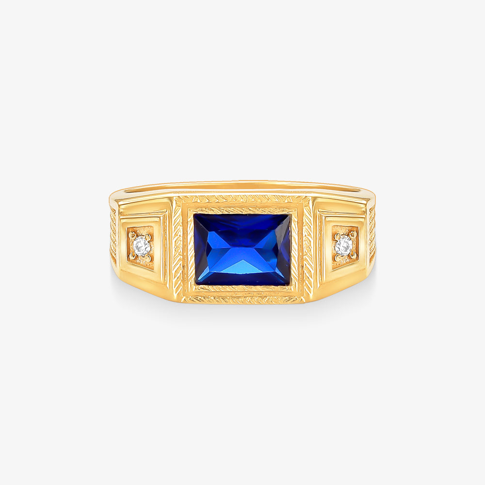 Anel Masculino Azul Imperial em Ouro Amarelo 18K