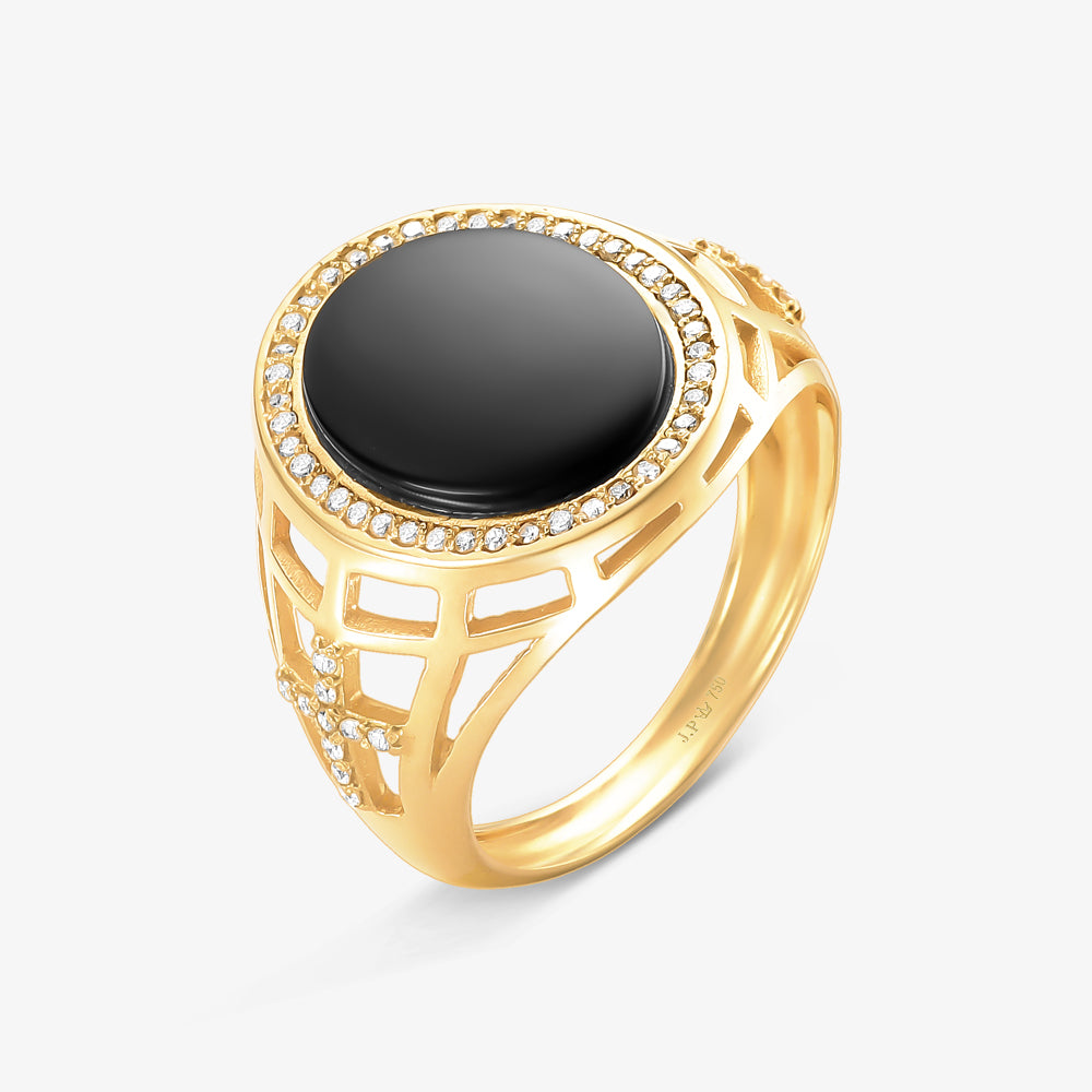 Anel Onix Natural com Diamante em Ouro Amarelo 18K