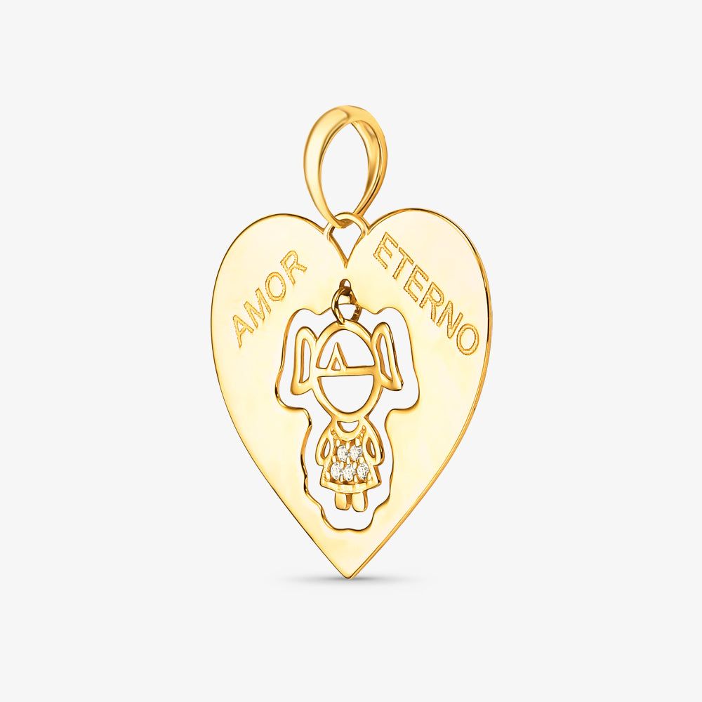 Pingente Menina Coração Amor Eterno com Pedras em Ouro Amarelo 18K