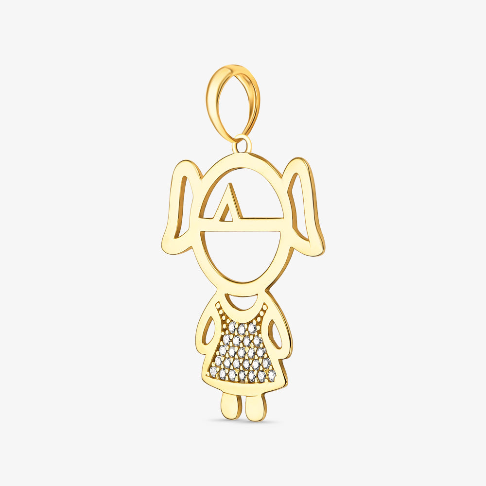 Pingente Menina Vazado com Pedras em Ouro Amarelo 18K