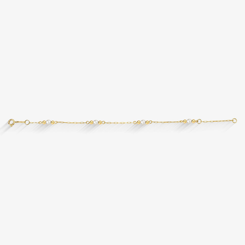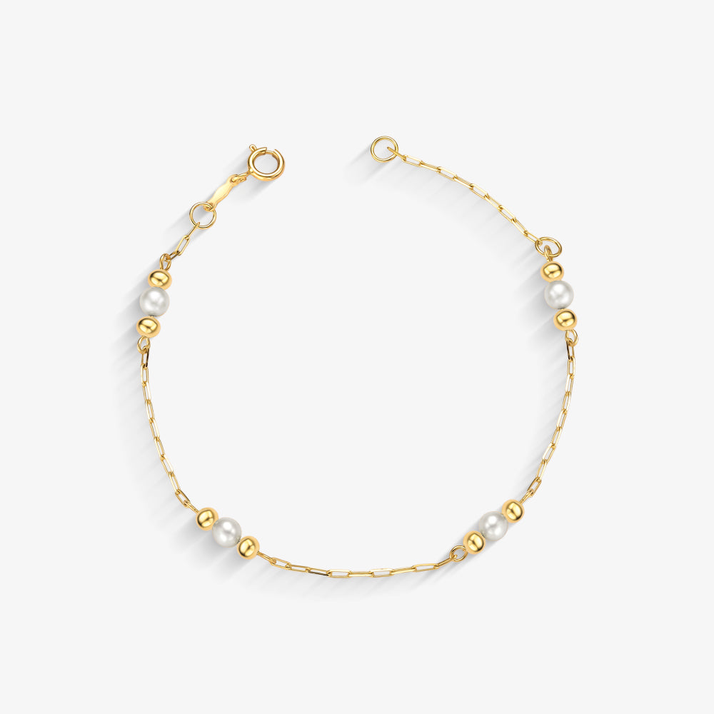 Pulseira Infantil 2 Bolas com Pérolas Naturais em Ouro Amarelo 18K