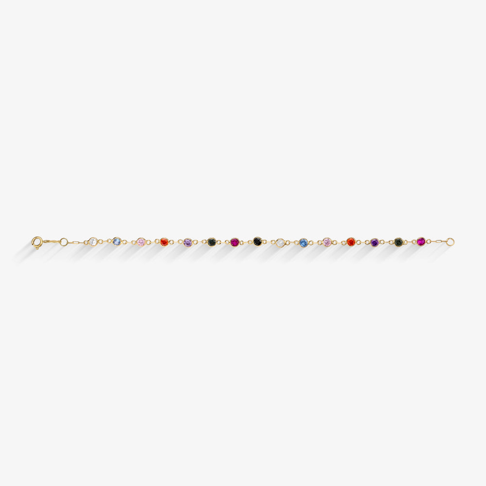 Pulseira Infantil com Pedras Colorida em Ouro Amarelo 18K