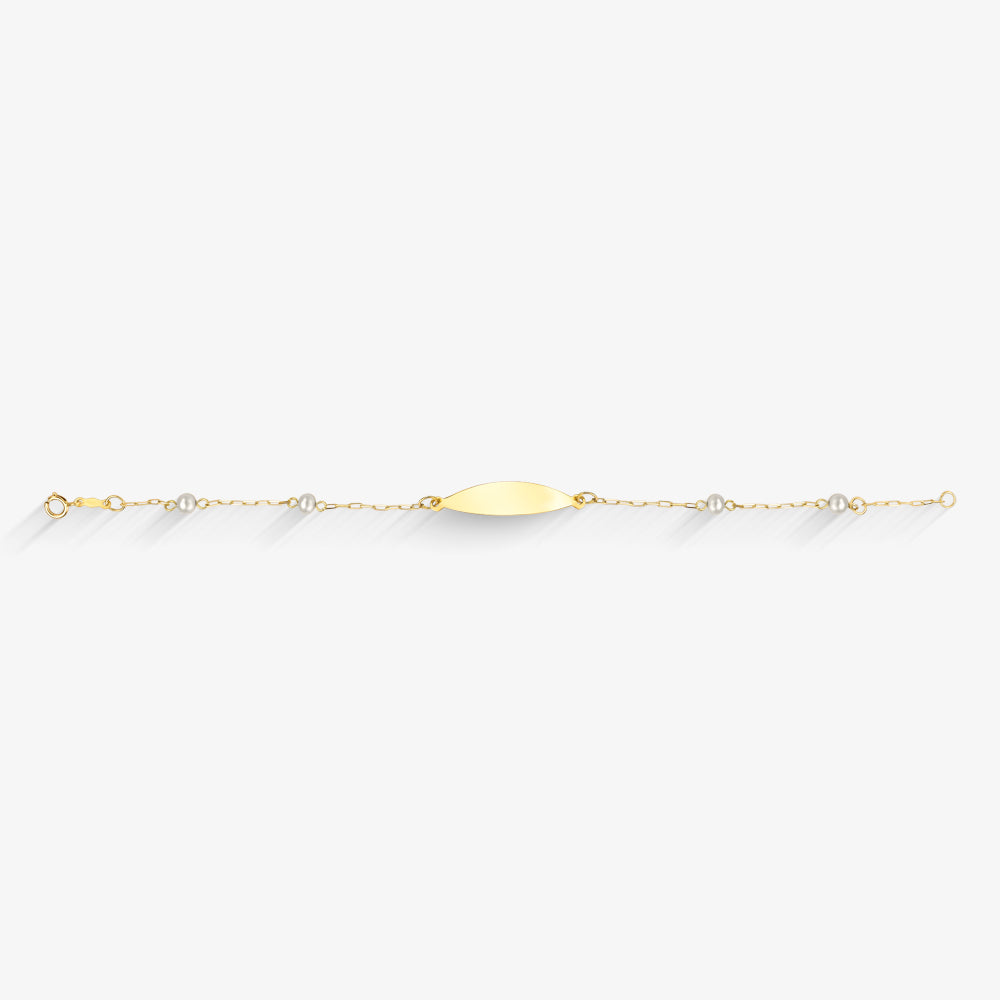 Pulseira Chapinha com Pérola em Ouro Amarelo 18K