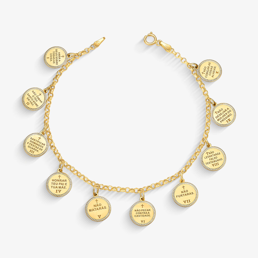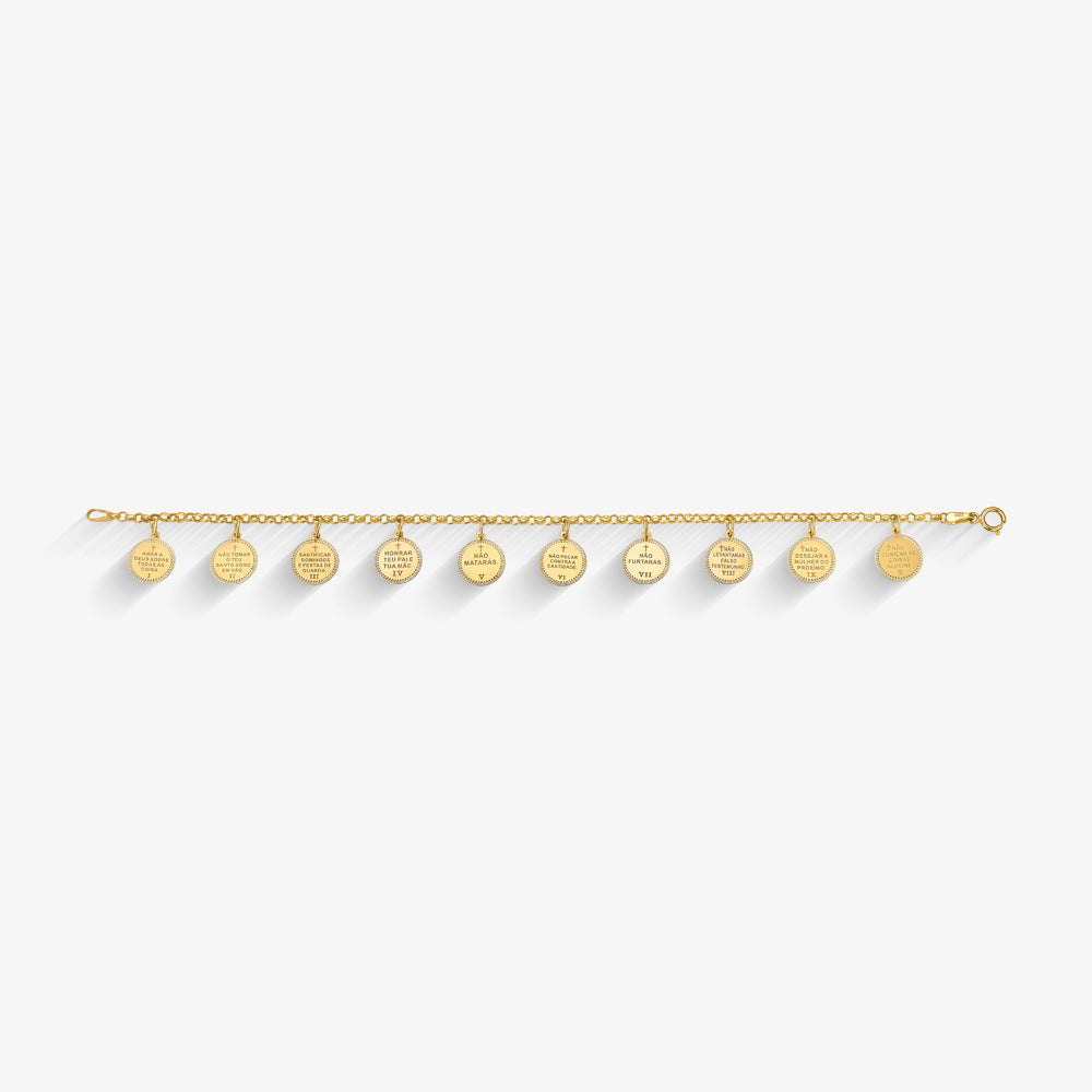 Pulseira Elo Português Dez Mandamentos em Ouro Amarelo 18K, 19cm