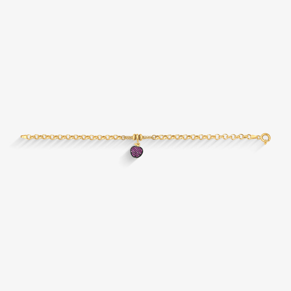 Pulseira Elo Português Maçã com Pedras em Ouro Amarelo 18K, 19cm