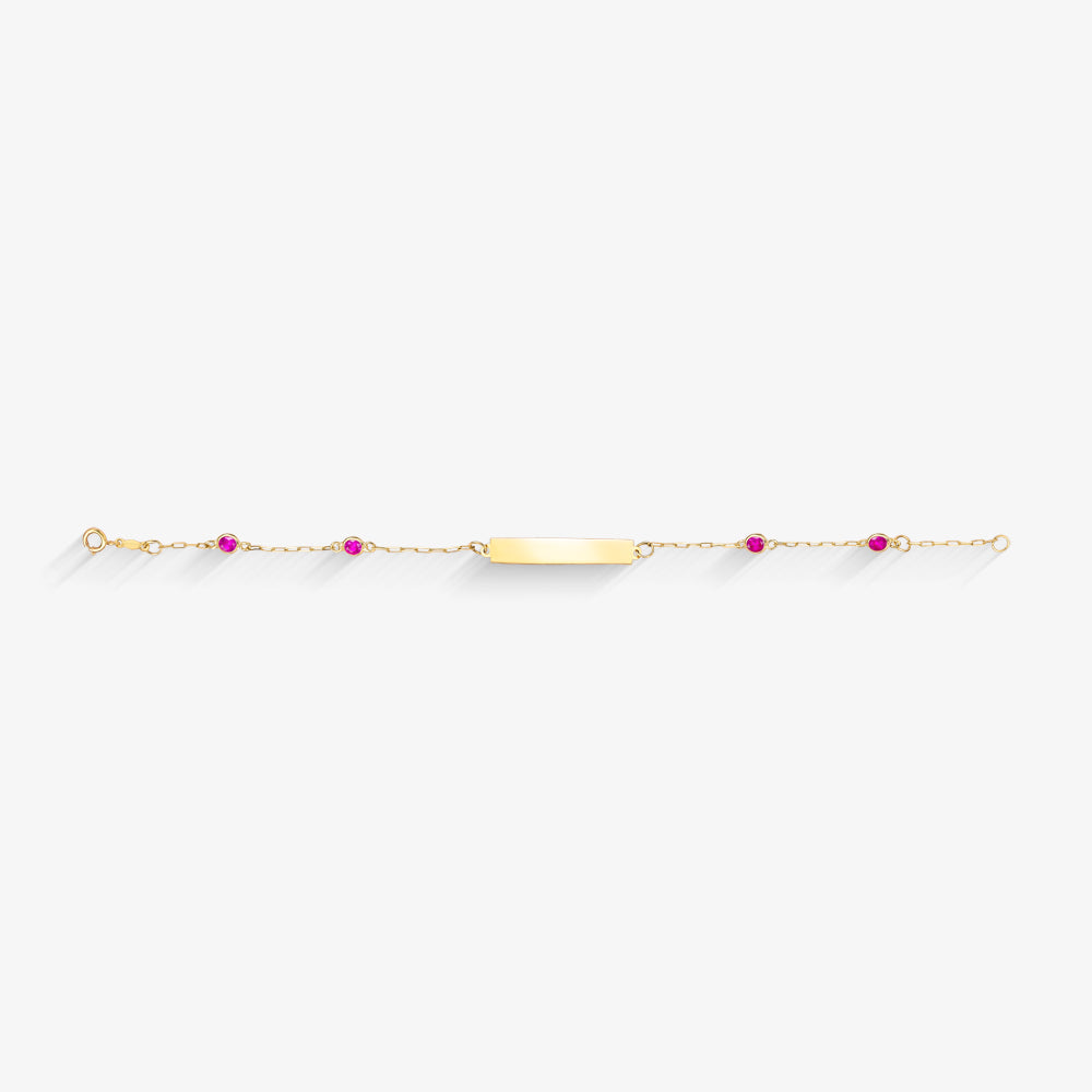Pulseira Infantil Chapa com Pedra Rosa em Ouro Amarelo 18K