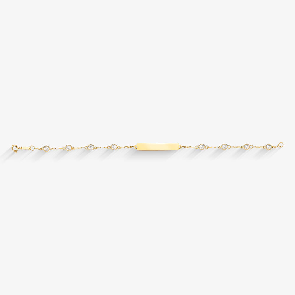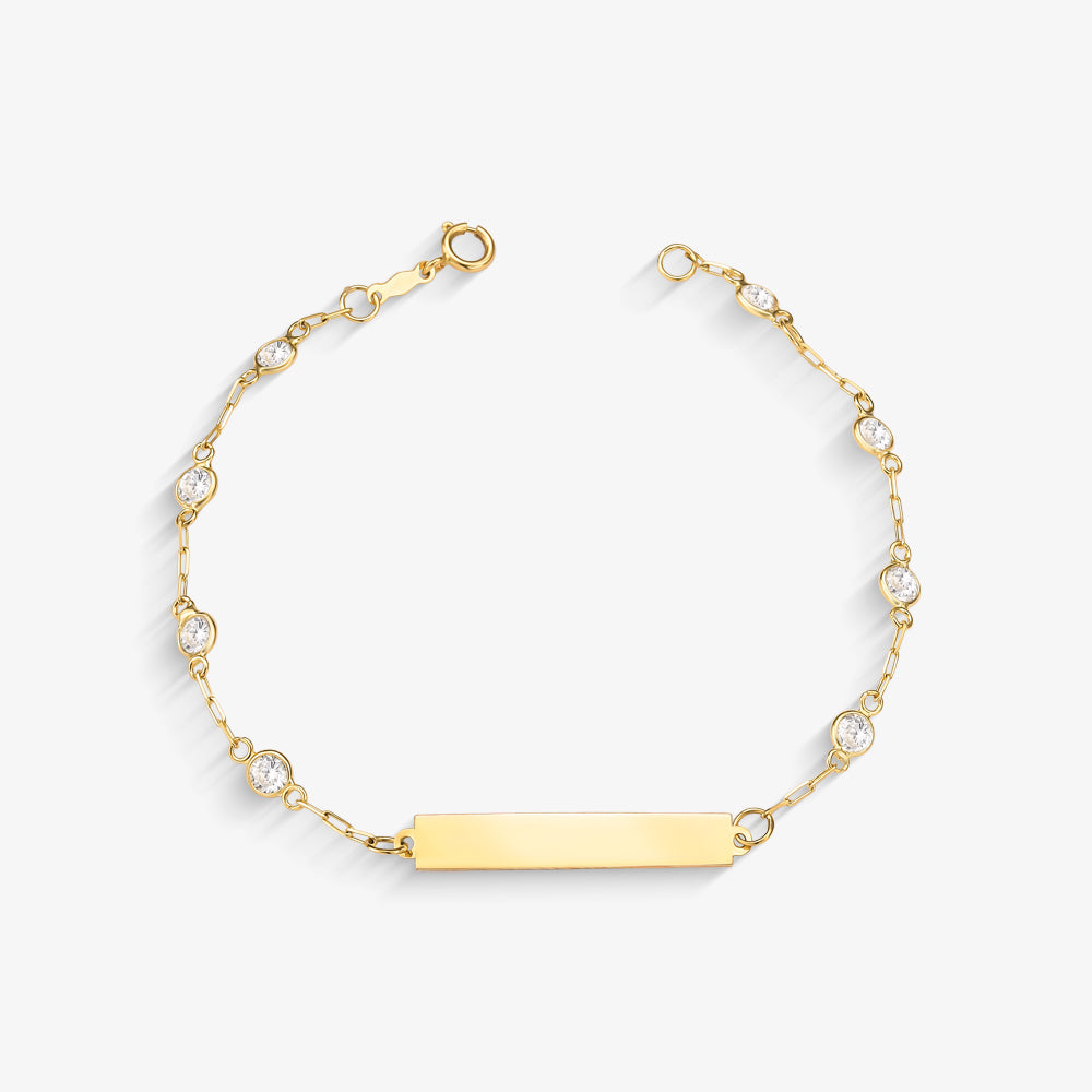Pulseira Infantil Chapa Retangular com Pedras em Ouro Amarelo 18K