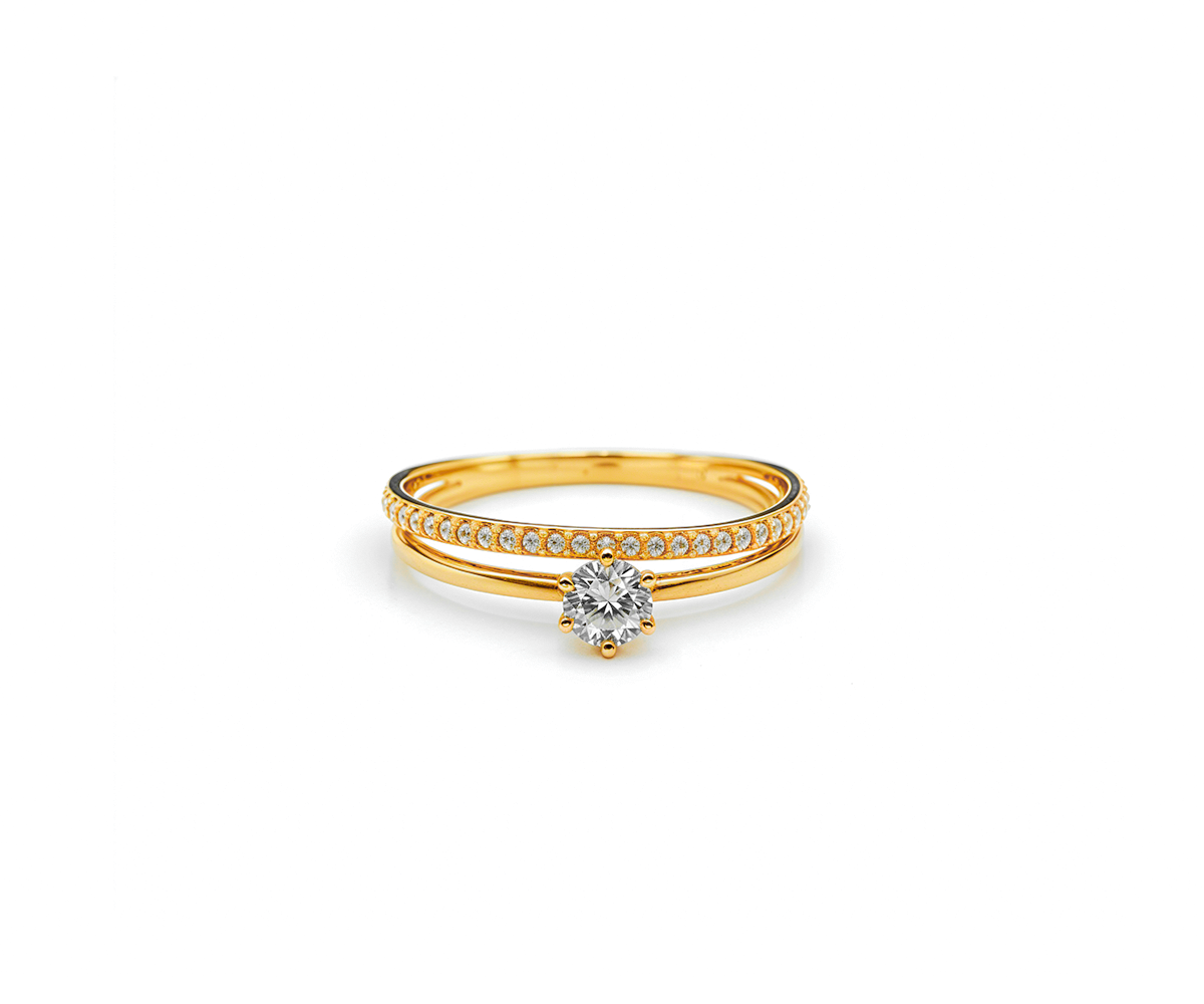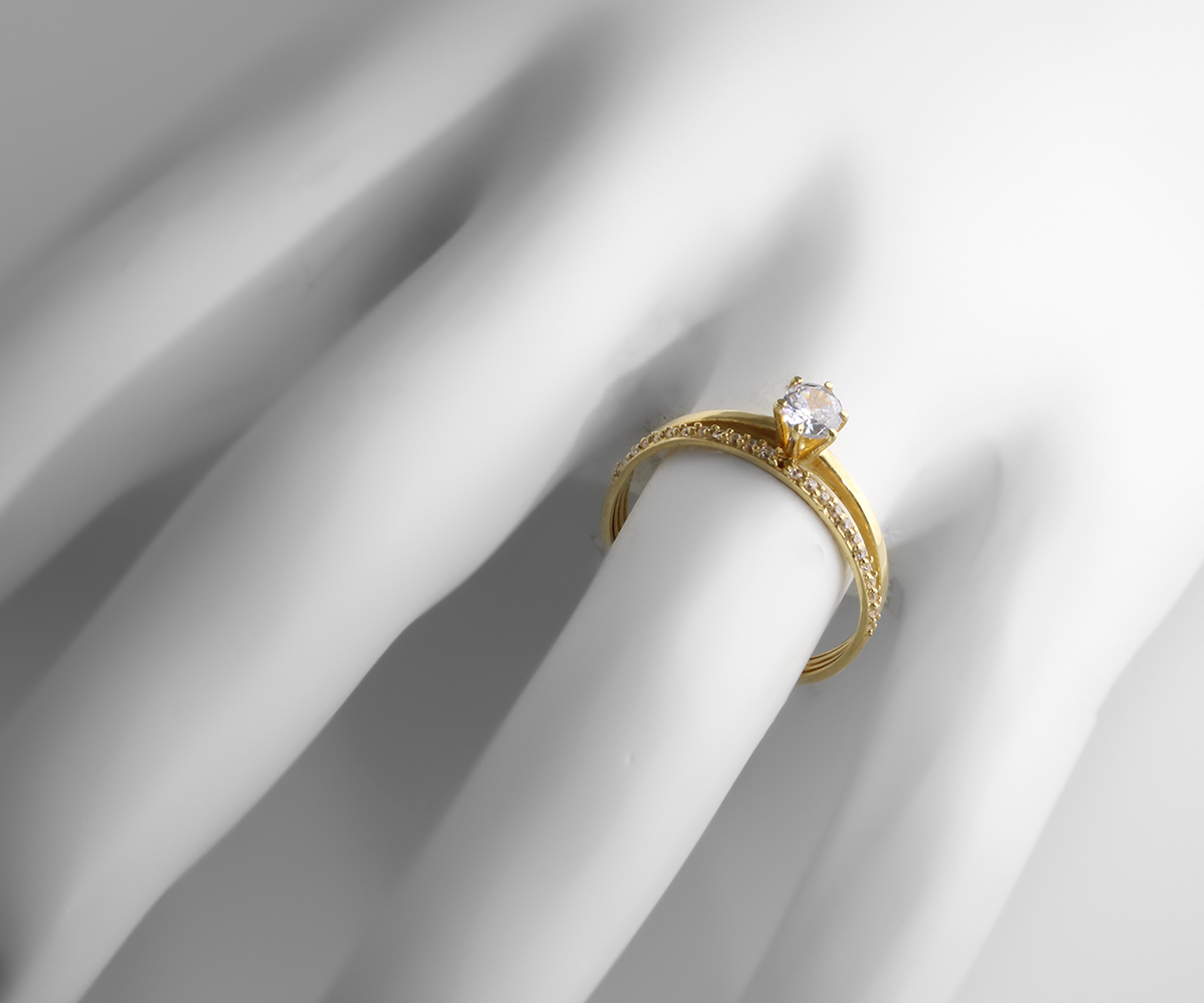 Anel 2em1 solitario+meia alianca zirconia 1,70g ouro 18k750