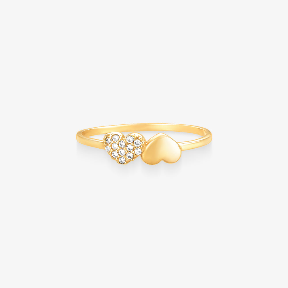 Anel Coração Duplo Liso em Ouro Amarelo 18K