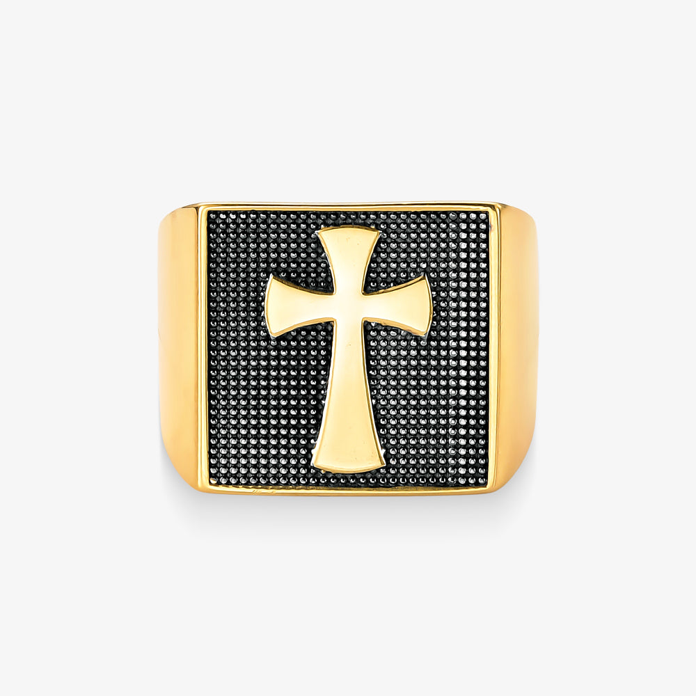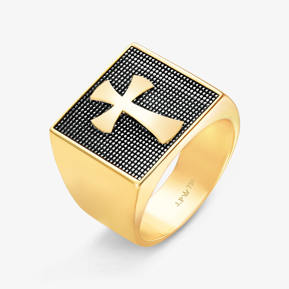 Anel Cruz Trabalhado em Ouro Amarelo 18K