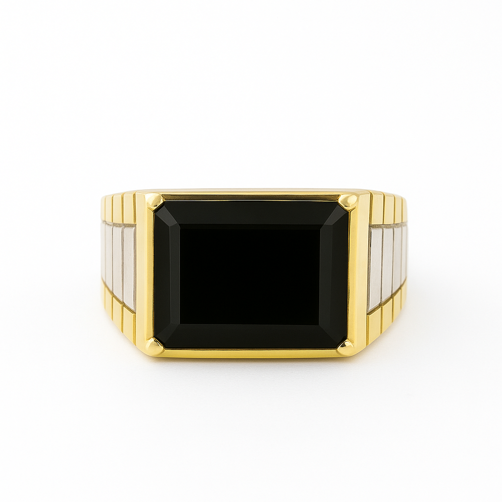 Anel Chapinha Retangular 7,7g c/Onix Nat Ouro Amarelo 18k 750