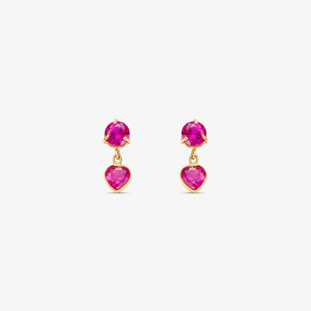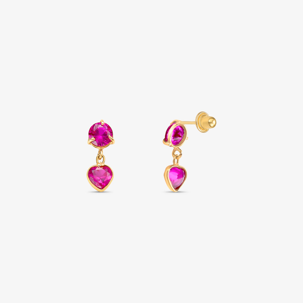 Brinco com Pedras Rosa Pendente em Ouro Amarelo 18K