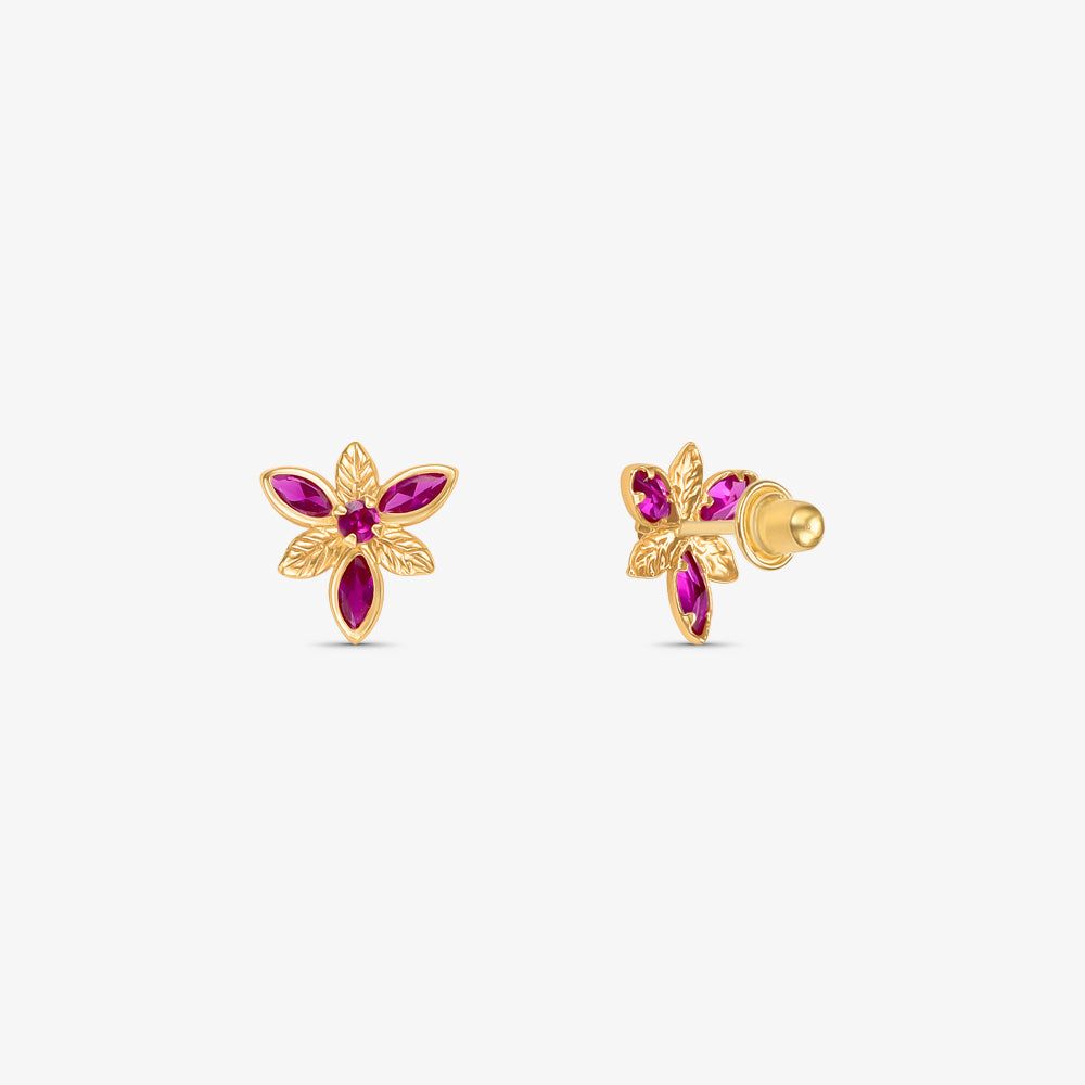 Brinco Flor com Pedras Rosa em Ouro Amarelo 18K