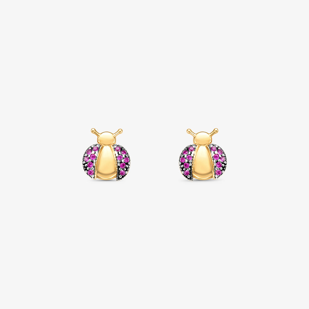 Brinco Joaninha Roxa em Ouro Amarelo 18K